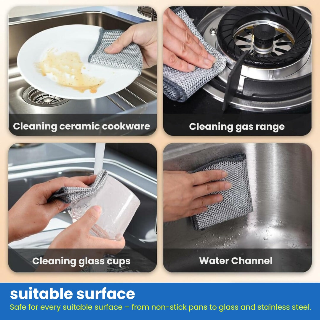 ✅ Effortless Cleaning: Our dishwashing rags feature a special wire construction that ensures effective scrubbing.